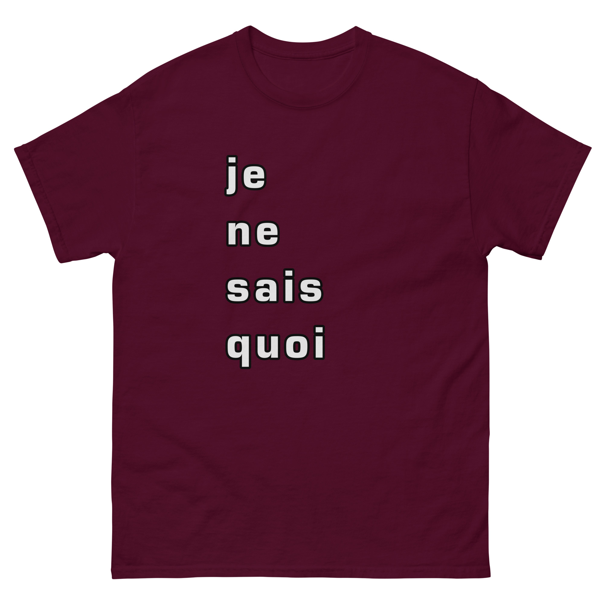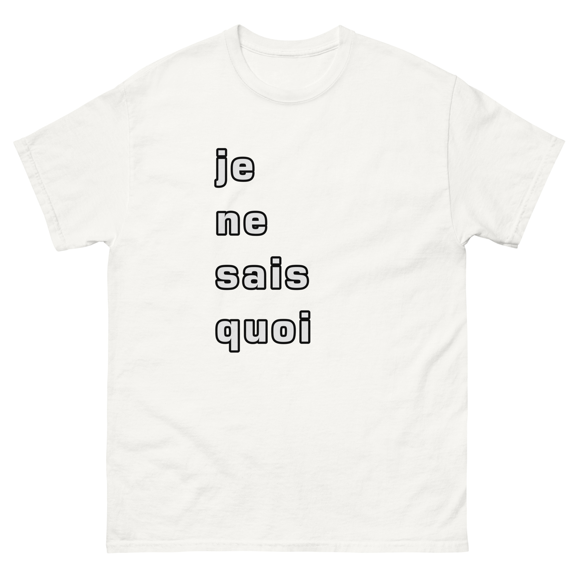 Discover the allure of understated style with our “Je Ne Sais Quoi Chic T-Shirt.” This elegant tee brings to life the famous French phrase, embodying an enigmatic charm that’s both intriguing and stylish. Made with premium, soft fabric, it ensures comfort and durability for everyday wear. Its classic design is versatile, making it an ideal match for jeans, skirts, or any casual attire. The phrase “je ne sais quoi” is elegantly printed, serving as a conversation starter and a nod to timeless European elegance. Perfect for those who appreciate fashion with a subtle, mysterious edge, this shirt is more than just a piece of clothing – it’s a statement of effortless sophistication. Add a touch of French-inspired charm to your wardrobe with our “Je Ne Sais Quoi Chic T-Shirt.”